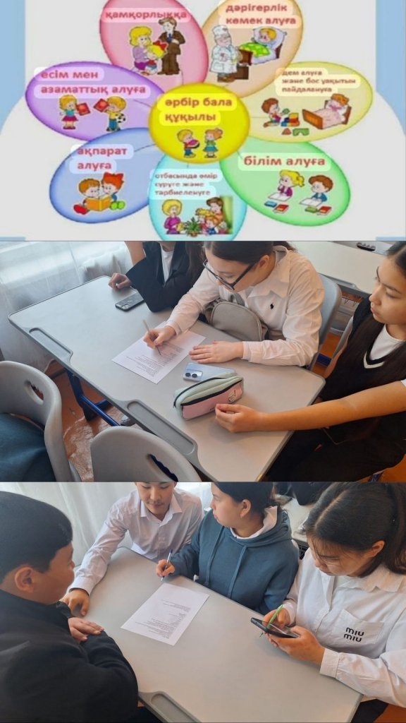 Оқушылар Қазақстан Республикасының Конституциясында бекітілген өз құқықтары жайлы білді және оларды күнделікті өмірде қолдану жолдарын талқылады.
