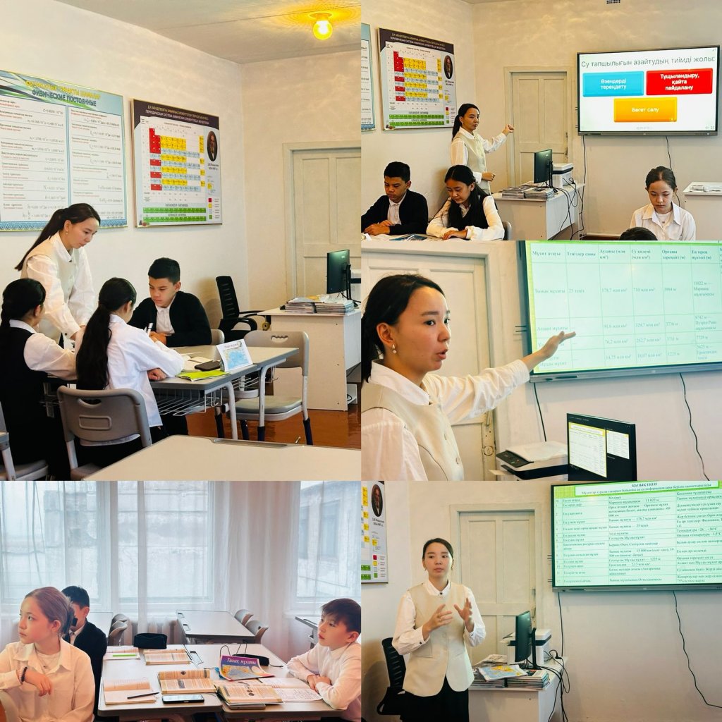 Топтық жұмыс кезінде олар картадан Дүниежүзілік мұхиттың бөліктерін анықтап, ең терең шұңғымаларды талдап, дайындалған постер арқылы өз ой-пікірлерін қорғады. Ал жеке тапсырмаларда әрбір оқушы мұхит бөліктерін картадан нақты көрсетіп, тақырыпты қаншалықты меңгергенін дәлелдеді.