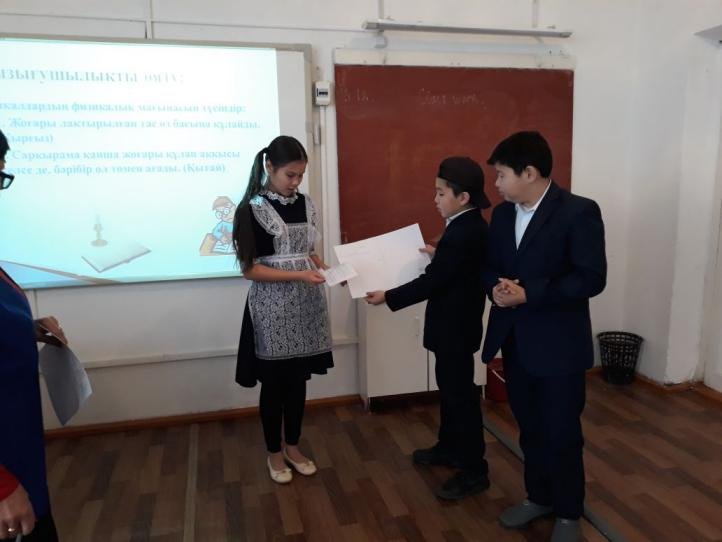 13 декабря 2017 года учитель физики Макишева М.К. провела открытый урок по физике в 7 "ә" классе на тему: "Деформация". Во время урока учащиеся показали свои знания по физике при выполнении индивидуальных и групповых заданий. В ходе урока были использованны элементы трехязычья. Психологическая атмосфера была благоприятной.