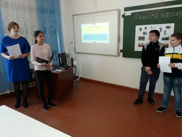 2017 жылдың 3 қарашасында № 6 орта мектебінде «Колесо истории» атты викторинасы өтті. Іс-шараға 8 «А» сынып оқушылары қатысты. Викторина 5 кезеңнен тұрды. Өз елінің тарихын білу мақсатында бір-бірімен жарысқа түскен 2 топ ұйымдастырылды. Іс-шара барысында әділқазылар алқасы Тулеуова Г.К. мен Исасиитова А.А. топтардың әр кезеңнен кейінгі жинаған ұпайларын мұқият қадағалап отырды. Викторинаның нәтижесі бойынша әр топтың ұпайлары есептелді. «Білгірлер» тобы 34 ұпай, ал «Тарихи аңыздар» тобы 28 ұпай жинады. Әр топ грамоталармен марапатталды. Іс-шараның барлық қатысушылары өздеріңе жаңа мағлұматтар алды деп есептеймін.