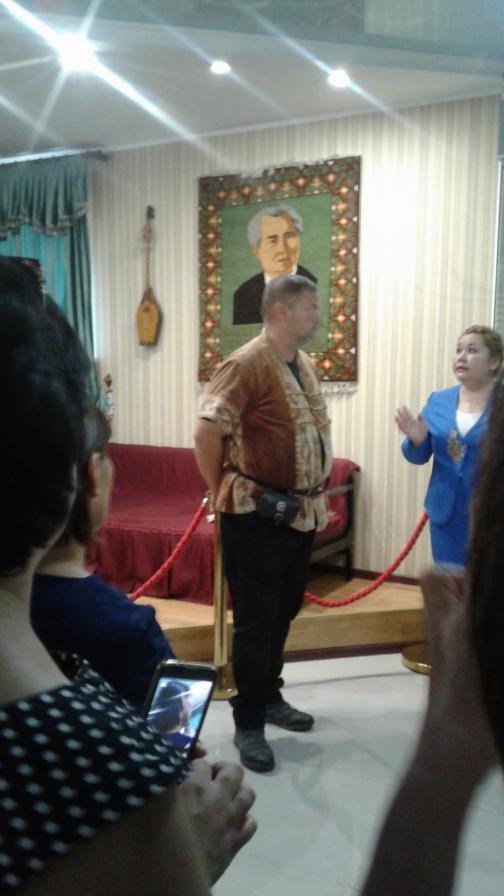 Работники музея в начале встречи провели для гостей небольшую экскурсию и рассказали о нашем самом знаменитом земляке – Ильясе Есенберлине.