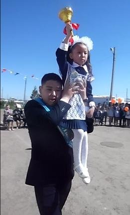 Соңғы қоңырау үнін соғу 11 "Ә" сынып оқушысы, жас түлек - Сагатпеков Алмасқа және 1 "А" сынып оқушысы - Нұрғалиева Заринаға берілді.